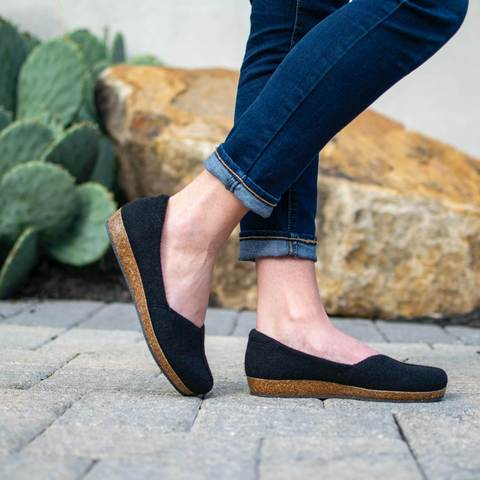 I just found out that Stegmann footwear is hand-crafted in Austria (wool upper), Germany (footbed) and Missouri (assembly), not outsourced to China like some other comfort shoe brands. Each wool upper is hand-felted on a “shoe last,” which is basically a “wooden foot shape.” Much of this wool is sourced locally in the Tyrolian Alps and is part of Stegmann’s Species Preservation initiative to support small farmers and sustain rare breeds of sheep. Isn’t that fascinating?