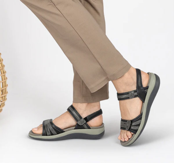 The Orthofeet Paloma is no frills on the outside but has some serious comfort technology going on in the inside. We highly recommend watching the video from podiatrist Dr. Splichal below the sandal description here. The Paloma features a removable footbed and can accommodate a custom orthotic, but you may find the original support to be perfect as is. Each pair comes with an additional arch booster which can be inserted under the footbed for enhanced arch support. Find the Orthofeet Paloma in sizes 5-12, medium and wide widths for $99.95 from Orthofeet.com.