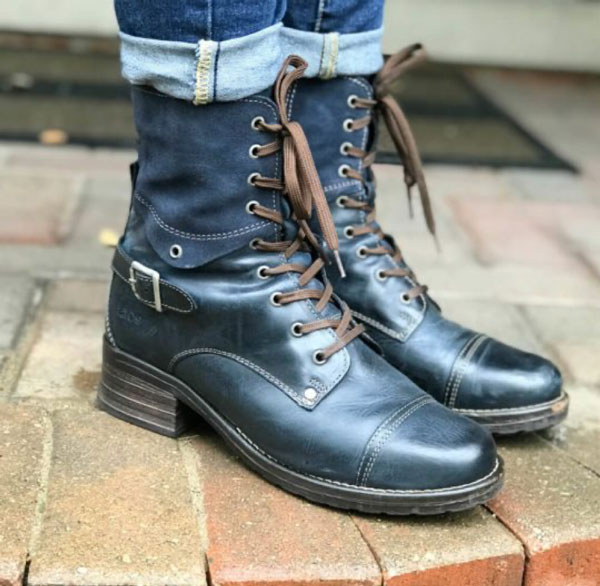 Do you live in a climate with temperate winters around 40 degrees? This boot may be the only winter boot you need. It has a soft faux-fur lining that keeps toes cozy and warm. Truly the designers of this stunning boot thought of everything–just look at the distressed leather and soft suede uppers in rich fall hues from ink blue (pictured here) to bordeaux to teal. The attention to detail is noteworthy: cap-toe stitching, buckle embellishment, and metal eyelets.