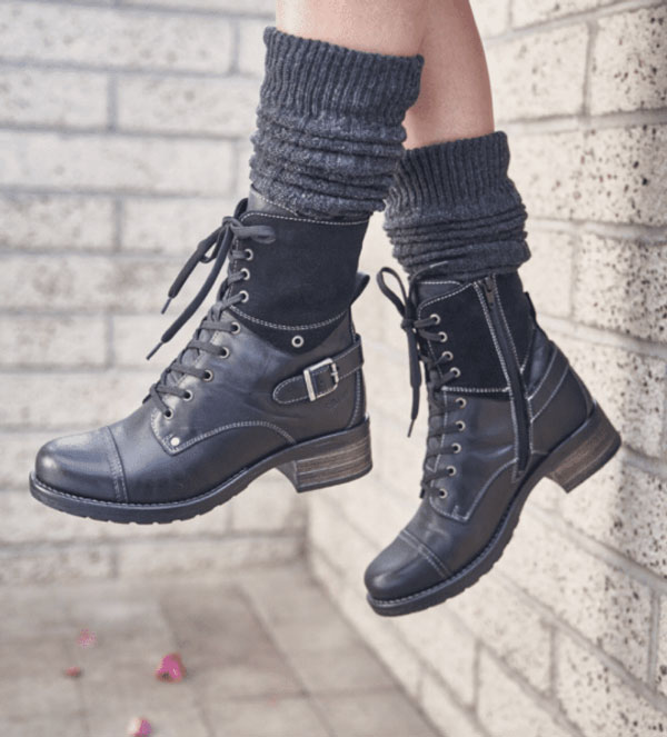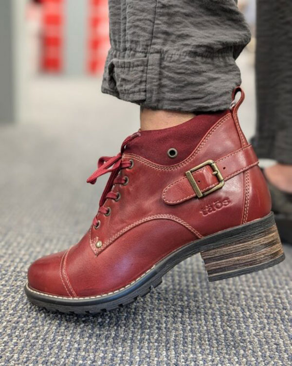 Taos calls the Crave an “urban” boot–but my SUV-driving, Target-shopping suburban feet crave the comfort of this boot every bit as much as urban feet. Tonight I took them for a spin around our neighborhood as my youngest went trick-or-treating. First off, I love a lace-up boot with a side zipper. Who’s got time to tie their boots every time they leave the house? Adjust the laces once and be done with it!