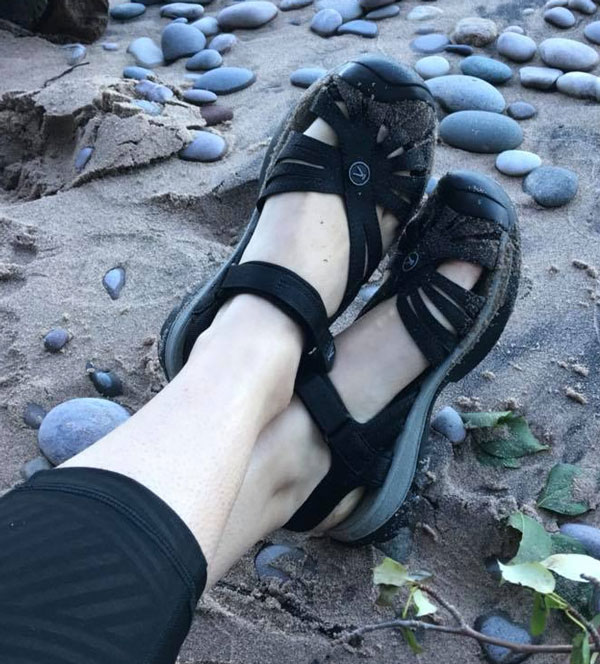 I took my new sport sandals on a week-long camping trip to Manitoulin Island, Ontario two weeks ago. While we headed north, the weather turned south. Gale-force winds buffeted our tents and white-caps crashed across the normally serene lake right outside our tents. Needless to say, I was happy to have a sandal that could take on the wet conditions. I brought them into my tent each night and they were dry by morning, no harm done.