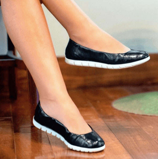 Recently I’ve received requests for flats that accommodate a wider forefoot while providing a snug fit at the heel. This SAS Radiant is it! The rounded toe box is wider than a typical ballet flat and the elasticized topline keeps the shoe from slipping off narrow heels. Plus, the Radiant comes in four widths from narrow to extra wide to fit all foot shapes.