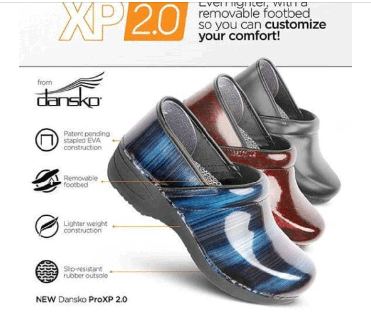 The Dansko Pro XP 2.0 is available in 8 colors/patterns in euro sizes 36-42 at Dansko.com, The Walking Company and Zappos.