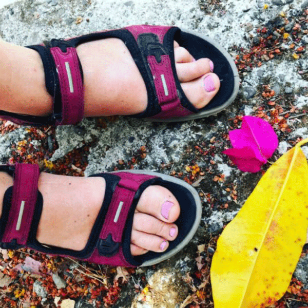 Although I wore my Keen closed-toe sandals on off-path hikes through water and slippery rocks, I chose the Ecco Yucatan for our many path hikes and casual walks through town. With temperatures in the 90s and high humidity, an open-toe sport sandal allowed for better air circulation around my tired feet. While the upper straps are nubuck, they’re lined with soft Lycra® spandex and nylon for a soft feel that wicks moisture.