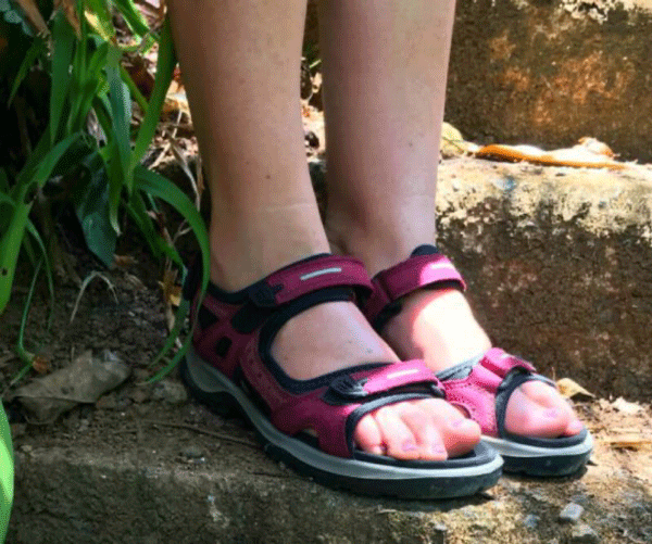 You don’t need to climb Mayan ruins to appreciate the Ecco Yucatan–it’s a sandal for diehard adventurists and casual hikers alike. We just got back from a week in Costa Rica with friends and I’m so glad I had my Yucatans. I deliberated more than necessary over which footwear to bring (imagine that). Before the final packing of the suitcase, I narrowed down my options to hiking boots (Ahnu Sugarpine), closed-toe sandals (Keen Rose), sport sandals (Ecco Yucatan), Nike running shoes and casual-dress sandals (Naot Dorith). I wound up leaving the hiking boots at home since they took up too much space in the suitcase, and brought the other four.