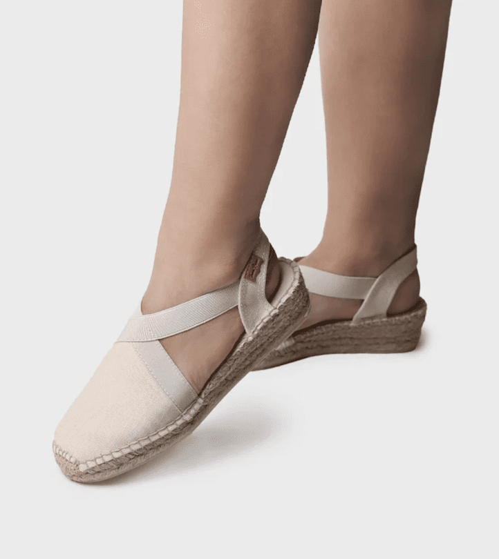 “This shoe is a classic espadrille from Spain. The shoe is very comfortable and the toe box provides room for your toes on a warm day.”