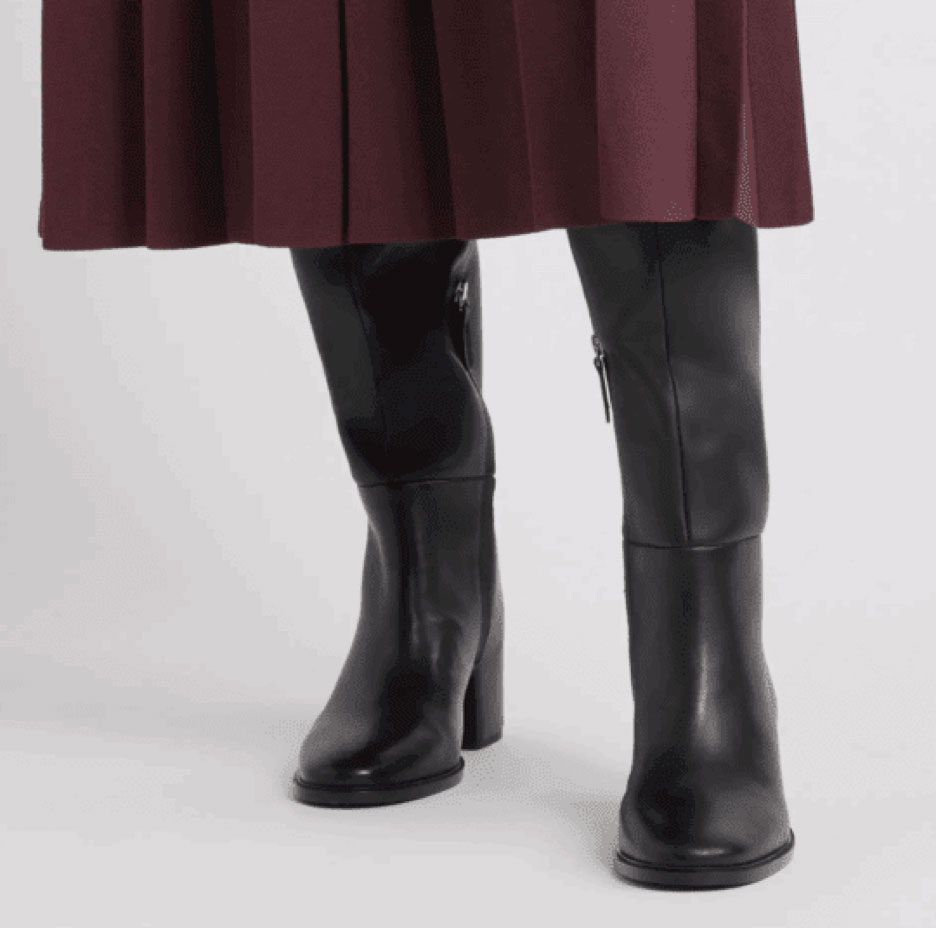 Are you a fan of tall boots? I had a pair of taupe Naturalizer knee-high boots from 2012 that I finally parted with due to a faulty zipper, but I loved those boots. I wore them with skinny jeans (I know, I know, it’s all about the wide legs these days), skirts and dresses–the fit was perfect and they kept my legs warm and put the “dress” in dress casual. It’s nice to see knee-high boots back for winter 2024-2025! I’ve rounded up ten comfortable tall boots with a good fit and support.