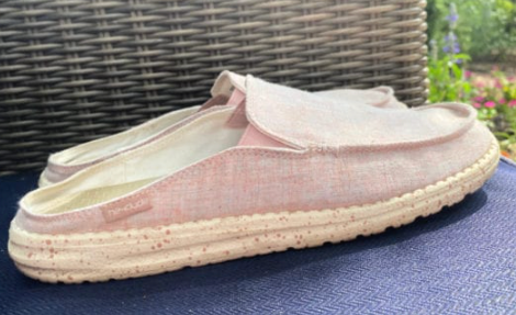 I’m glad I tried the Lexi mule over the popular Wendy low-profile chukka (which will be my next Hey Dude shoes purchase). The Lexi is the perfect summer shoe to slip-on quickly and go about my errands. The cotton canvas upper is soft and breathable which is a necessity for a closed-toe shoe during our extra humid Chicago summer. I thought the seams might irritate my toes, but there’s an oxford cloth lining that feels soft against feet. The toe box is nice and wide without making my feet look clownish. My bunions and hammertoes aren’t bothered at all (and they don’t show through the canvas like they do in other shoes with fabric uppers). Dual-goring at the instep provides a secure yet flexible fit.