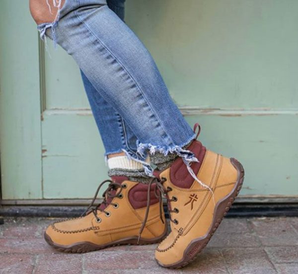 Great for feet that crave a roomy and high toe box! Other features to love: surprisingly lightweight outsoles, great traction, moderate arch support. A happy Ariat customer says this about the Fatbaby Chelsea boot: “I love these boots. I have wide feet and often have trouble with squeezy toe boxes. These fat baby Chelsea boots are roomy in the toe box, super cushy comfortable and have an arch support. I’m also in love with the print!” Availabe in a variety of solids and patterns, sizes 5.5-12 medium and wide widths (in some colors) for $77-109.95 from AriatZappos and Amazon.